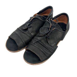 Brand: Pep. Monjo | Leather, handcrafted lace up, open toe shoes. Good pre-owned condition. Leather upper, liner and outsole.