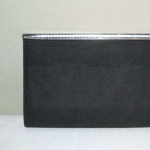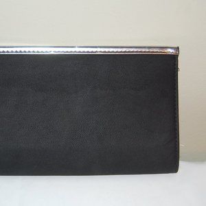 PACO RABANNE Parfums Black faux leather clutch with metallic accents