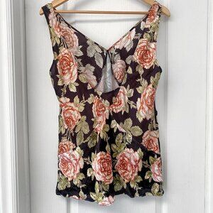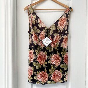 PACO Rabanne - Brown / Pink Multi Silk & Velvet Mixed Media Floral Rose V-Neck