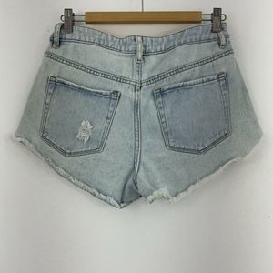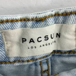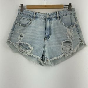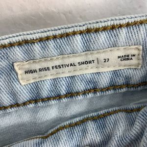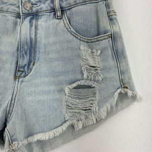PACSUN Light Wash Blue Denim Shorts, Ripped, 5 Pocket, High Rise Festival Short