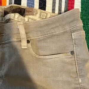 Elegant beige denim with intricate patterns. Perfect for casual wear.