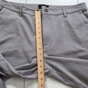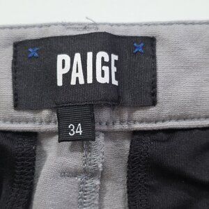 PAIGE Elmwood Jogger Pants Mens 34 Shark Fin Grey Pockets Stretch Transcend Knit Style Number M834374-6856 Pre-owned and in a good pre-owned condition as seen on photos.  Color brand's color 'shark fin' - light gray - color is more accurate on photos where items is laying flat Size 34 Zip and button fly closure Stretch Tight tech knit with slight texture in fabric Slash front pockets Button slash pockets on a back Ribbed hem MATERIALS rayon, nylon, spandex MADE IN China CARE machine wash cold, hang to dry or dry clean   Measurements and additional item condition details can be seen on photos. Please make sure to double check your measurements and message me in case of any questions 😊 All items are coming from smoke free home.  Offers are welcome.