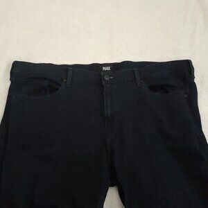 PAIGE men's Federal slim straight leg jeans in size 44. The colorway is Inkwell, a dark blue wash. These jeans feature a 5-pocket style with a zipper and button closure. They are made from PAIGE's TRANSCEND denim, offering a comfortable stretch fit.