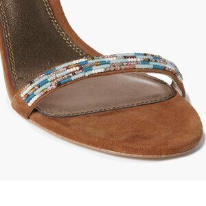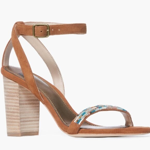 PAIGE New Brown Suede Block Heel Ankle Strap Beads