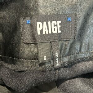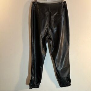 PAIGE Sz 6 Faux Leather Pants Pleated Front Zipper Elastic Hem Pockets Vegan. Liquid leather aesthetic. Trendy statement piece that is also classic and timeless.