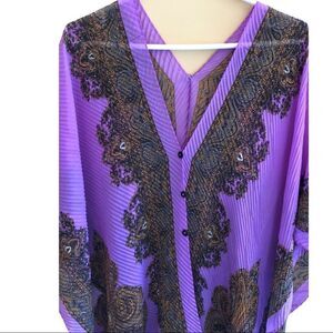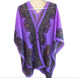 Gorgeous Purple Paisley print Poncho Wrap style shawl to wear over your bathing suit, t-shirt with jeans, shorts. Like New EUC. Square shape with handkerchief style at bottom hem. See measurements. One size.