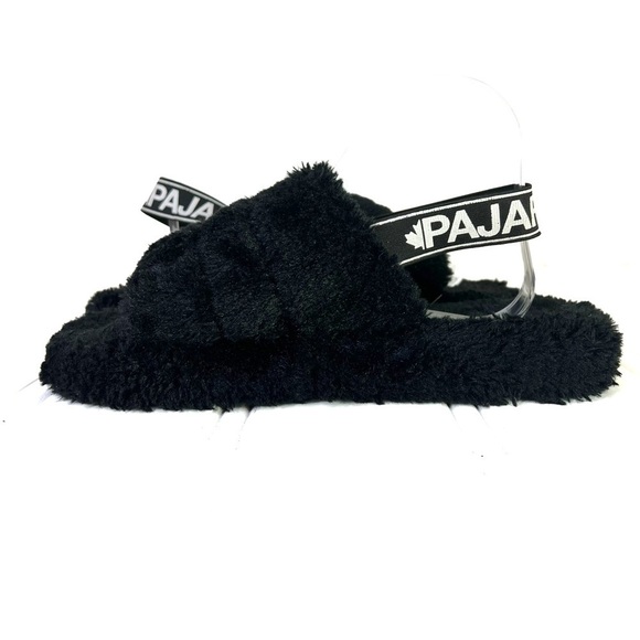 PAJAR BLACK FLUFFY SLIPPER TEDDY BEAR SLIPPER SLINGBACK WITH PAJAR SIGNATURE 8