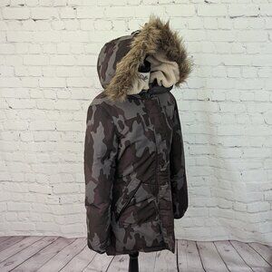 PAJAR 1963 Green Camo Parka Faux Fur Hood Trim Sherpa lined P2J0086F13
