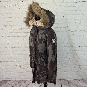 PAJAR CANADA Green Camo Feather Down Faux Fur Parka Sherpa S