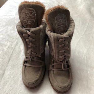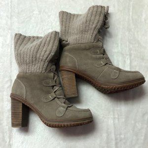 PAJAR Winter Fleece Lined Taupe Block Heel Fold Over Booties Size 8