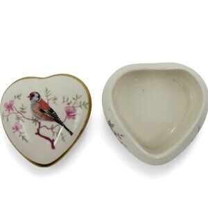 PALISSY England Porcelain Trinket Box Heart-Shaped with Bird Design Vintage