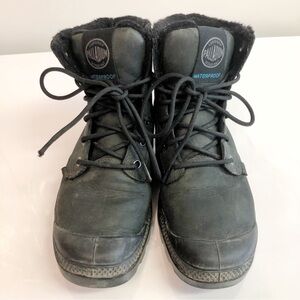 PALLADIUM PAMPA Black Leather Boots Fur Lined Waterproof Winter Boots Snowshoes.