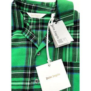 PALM ANGELS KIDS Checked Cotton Pajama Shirt Green ( 8 )