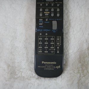 This Panasonic VCR+ Remote control is in great cosmetic condition with no wear on the buttons, select dial or the front or rear shield, As you can see from the pictures the battery compartment is Free of any battery leakage of any kind. Requires 2 AA batteries ( Not Included )
