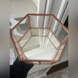 PANDORA Glass Jewelry Storage Box Octagon Copper Collectible Piece 2017 EUC