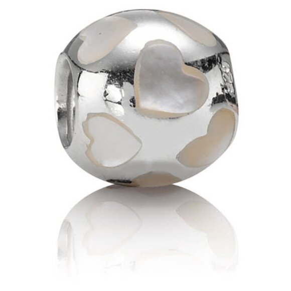 PANDORA Love Me White Mother of Pearl Charm Authentic Silver Hearts Love Romance