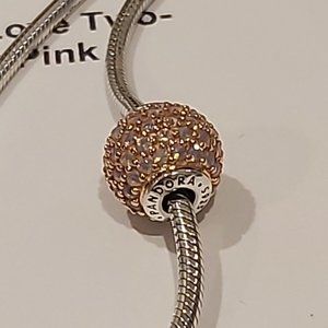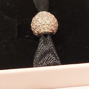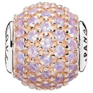 A tender and inspiring 14k rose gold and sterling silver charm by PANDORA ESSENCE COLLECTION, decorated by hand with opalescent pink crystals.