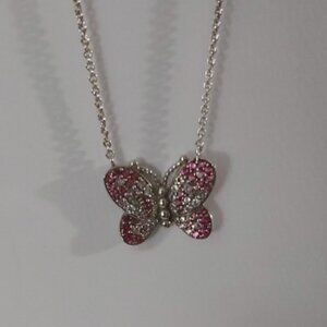 PANDORA *RETIRED* SS Dazzling Pink Butterfly Necklace w/ Pink and Clear Crystals