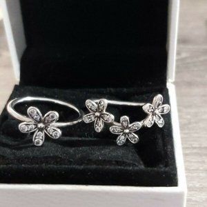 PANDORA Sterling Silver RETIRED DAZZLING DAISIES RING set -SIZE 7