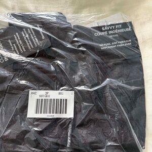 PANTS, PETITE SAVVY FIT STRAIGHT LEG CROSS DYE, SOFT GREY, SIZE 28P, ADDITION ELLE, IN ORIGINAL BAG, TAGS ON, NEW NEVER WORN