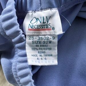 PANTS, PLUS, KNIT, DUSTY CORNFLOWER BLUE, SIZE 32W, WRINKLE & STAIN RESISTANT, ONLY NECESSITIES BY ROAMAN, 100% POLYESTER, ELASTIC WAIST, TAGS ON, NEW NEVER WORN