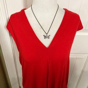 PAPA VANCOUVER Red v-neck short-sleeve top ~ Stretchy LARGE XL 1X shirt
