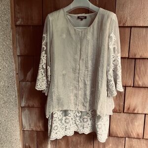 PAPA VANCOUVER SizeM Layered Organza Mesh Fully Embroidered Blouse Tunic Y2K 90s