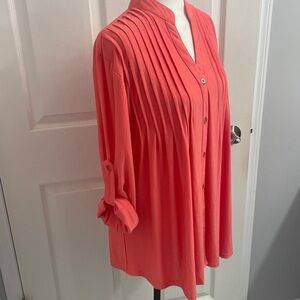 PAPA Vancouver Classic Button Down Pleats Color Coral/Salmon Long Sleeve Sz L
