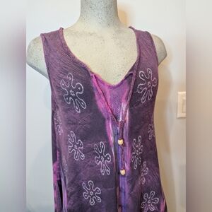 PAPA Vancouver rayon trapeze dress or tunic length top. Purple pink & white tie dye. Lightweight