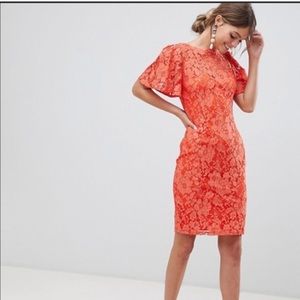 PAPER Dolls Flutter Sleeve Pencil Dress | ASOS Orange size 6 lace bodycon
