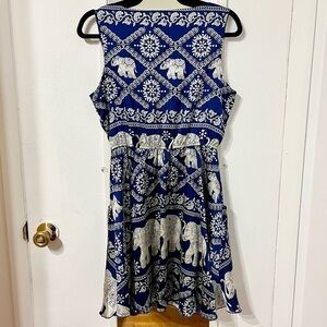 🔹PAPER PLANE London Blue and White Elephant Print Silk like Mini Dress