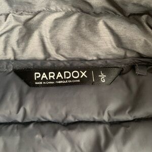 Chic gray puffer jacket by Paradox with striking neon green details. Ideal for a trendy look. Perfect for mid-season.