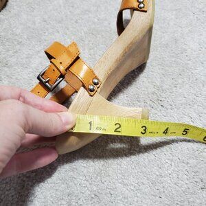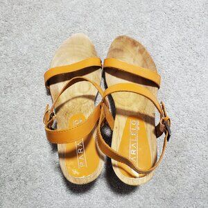 PARALELO by GVA Leather and Wood Heels Sandals Shoes Strappy Gold Women 36, 5.5