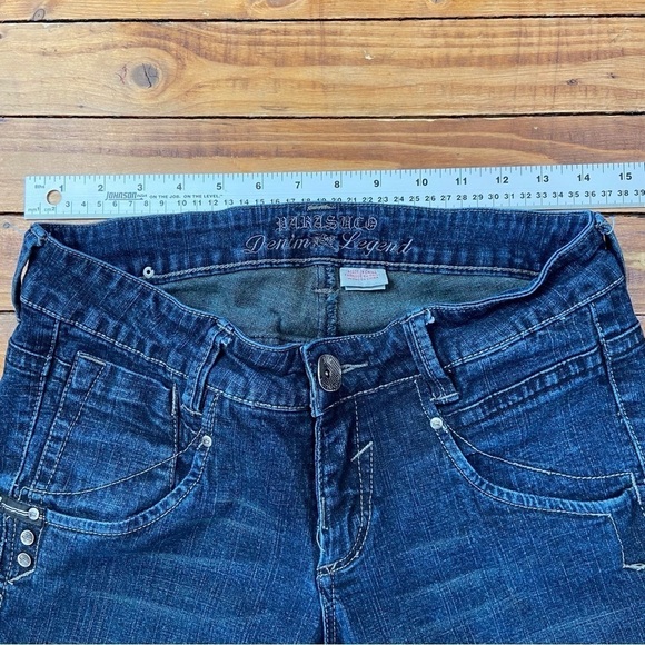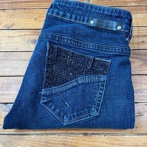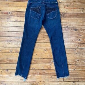 PARASUCO jeans dark blue sequins ripped bottoms size 29 skinny low rise stretchy