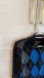 Classic Argyle Mens Long sleeved Sweater with zipper at neck. Fabric is 100% Cotton and soft to the touch. Argyle pattern is in is black/blue/grey abs white. Size Small