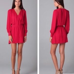 PARKER Silk Long Sleeve Mini Wrap Dress Red S