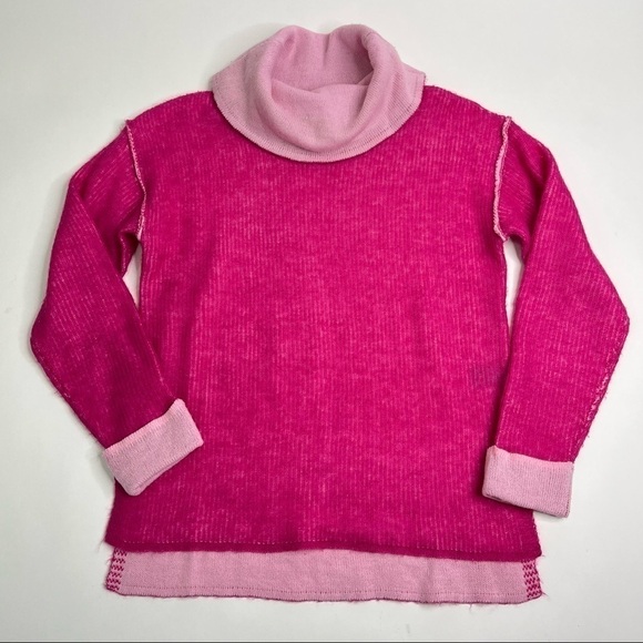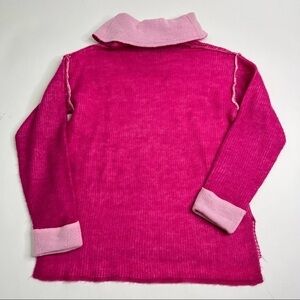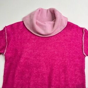 Parkhurst Barbie Pink Wool Mohair Blend Two Toned Side Split Turtleneck Sweater
