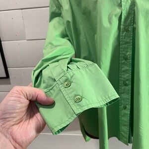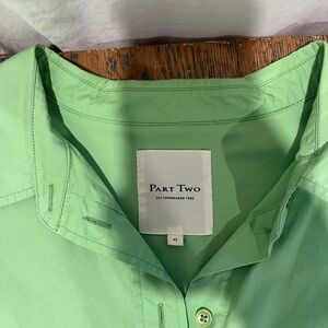 Relaxed-fit button-down shirt by Part Two in a fresh and vibrant green. Classic collar, dropped shoulders, and wide sleeves for a casual, effortless look. Size 42, fits comfortably loose. Excellent condition.