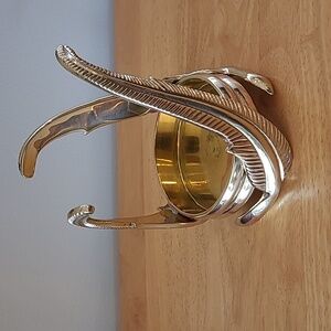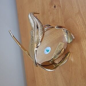 PARTYLITE Vintage 90s Brass Feather Pillar Candle Holder P0414