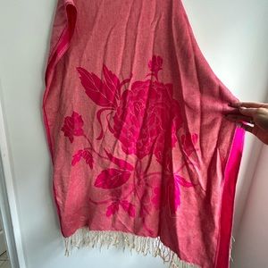 PASHMINA - in hot pink and light pink colour with rose flower design and fringe bottom. Perfect condition.