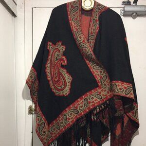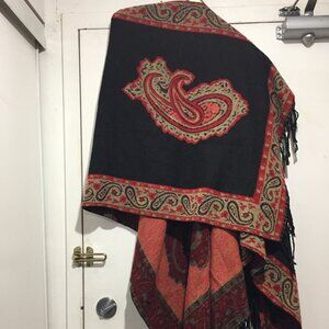 Pashmina Cashmere Print Design Shawl, Lightweight, One Size, Color Black, Multicolor Print, 100% Cashmere, Tassel One Thread Pulling, Good Condition, Soft Cashmere Wrap, Shawl, Great Look, Great Fit.