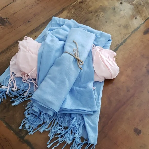 Three pasminas. Two blue and one pink. Great condition. Left overs from a wedding that weren't needed.