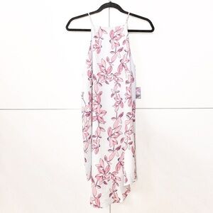 New with tags Midi length dress Pastel blue colour with a pink floral print Fully lined High neckline