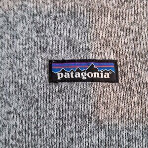 Patagonia sweater, heather grey color. Super comfortable and versatile, ideal for layering, camping, relaxing, hiking, and everyday wear. Patagonia is a sustainable and environmentally conscious outdoor clothing brand.