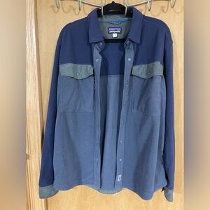 Built from warm, ultrasoft 100% recycled polyester microfleece, with NetPlus® 100% postconsumer recycled nylon faille, made from recycled fishing nets to help reduce ocean plastic pollution, on the inner collar and placket, chest pocket flaps and cuffs