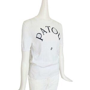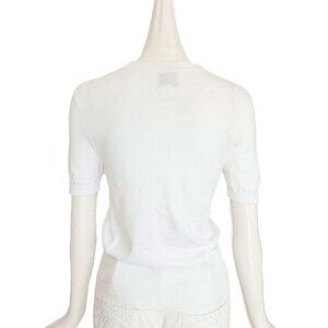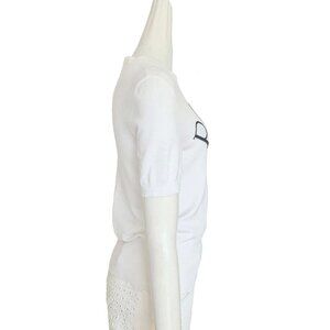 PATOU WHITE SHORT SLEEVES JACQUARD COTTON KNIT TOP (M)