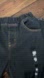 Loose fit. Elastic and stretchy waistband. No zipper, snap, or button. 2 front pockets, no back pockets. White/grey flecks in black denim. It is a very soft, light, and stretchy denim. Factory distressed holes have no backing or reinforcement. Wide flares at bottom with a raw edge - there is a line of stitching to reinforce the hemline.