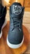 Stylish black and white high-top sneakers with a unique design. Perfect for casual wear.