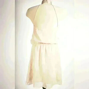 Stunning Patrizia Pepe blush cream halter neck mini dress, size 42EU (Small), made in Italy. Features sequin detail on the neck and an open back.