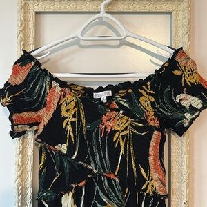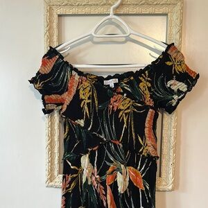 PATRONS OF PEACE | Maxi Over the Shoulder Dress With Tropical Flowers